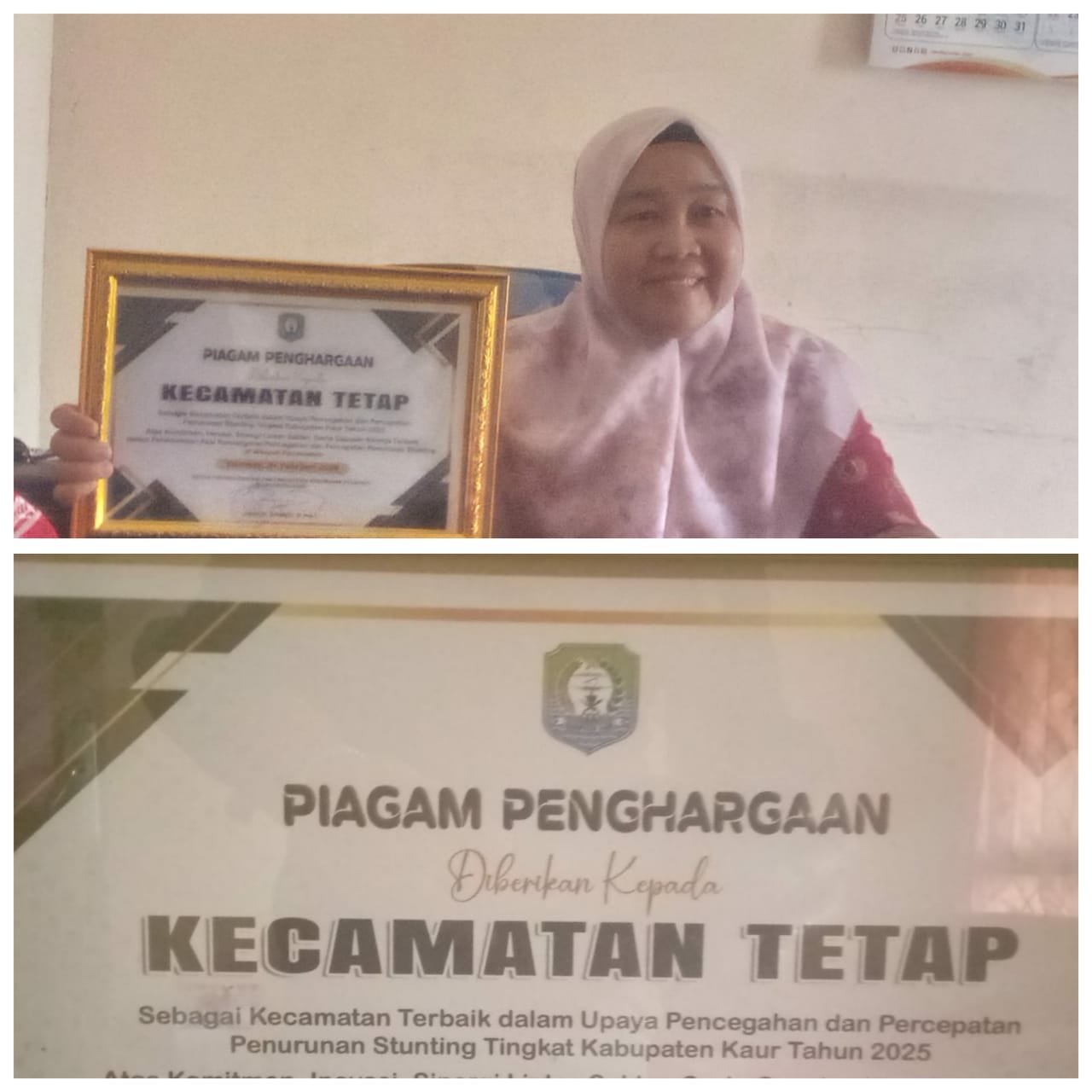 KAUR,RJ News.id – Pemerintah Kabupaten Kaur memberikan penghargaan kepada Kecamatan Tetap atas capaian kinerja dalam percepatan penurunan angka stunting tahun 2025.