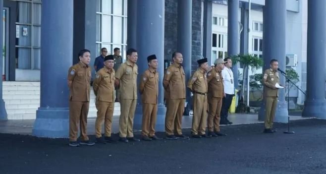 Apel gabungan berlangsung tertib dan khidmat sebagai wujud soliditas jajaran Pemerintah Kabupaten Bengkulu Tengah dalam mendukung pelaksanaan pembangunan daerah. (Nov)