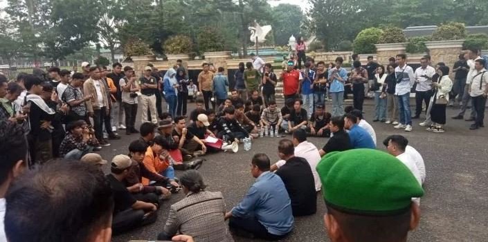 RJ News.id – Ratusan massa yang tergabung dalam Aliansi Suara Rakyat Jambi menggelar aksi unjuk rasa di depan Gedung DPRD Provinsi Jambi, Rabu (17/9/2025) sore.