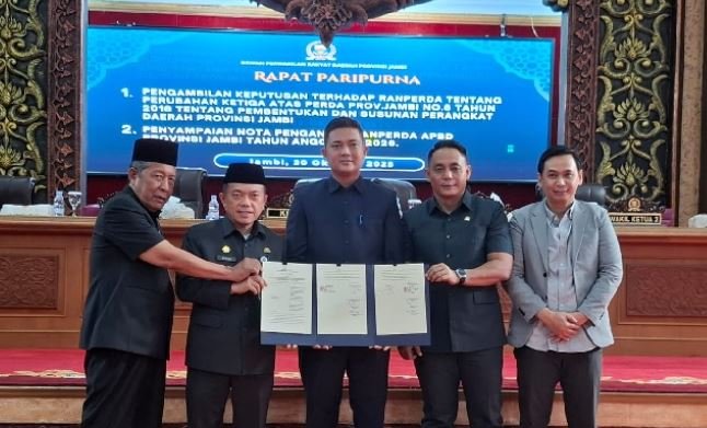 RJ News.id – DPRD Provinsi Jambi menyetujui pembentukan dua Organisasi Perangkat Daerah (OPD) baru yang diusulkan Pemerintah Provinsi Jambi. Persetujuan tersebut ditetapkan melalui rapat paripurna di Gedung DPRD Provinsi Jambi, Kamis (30/10/2025).