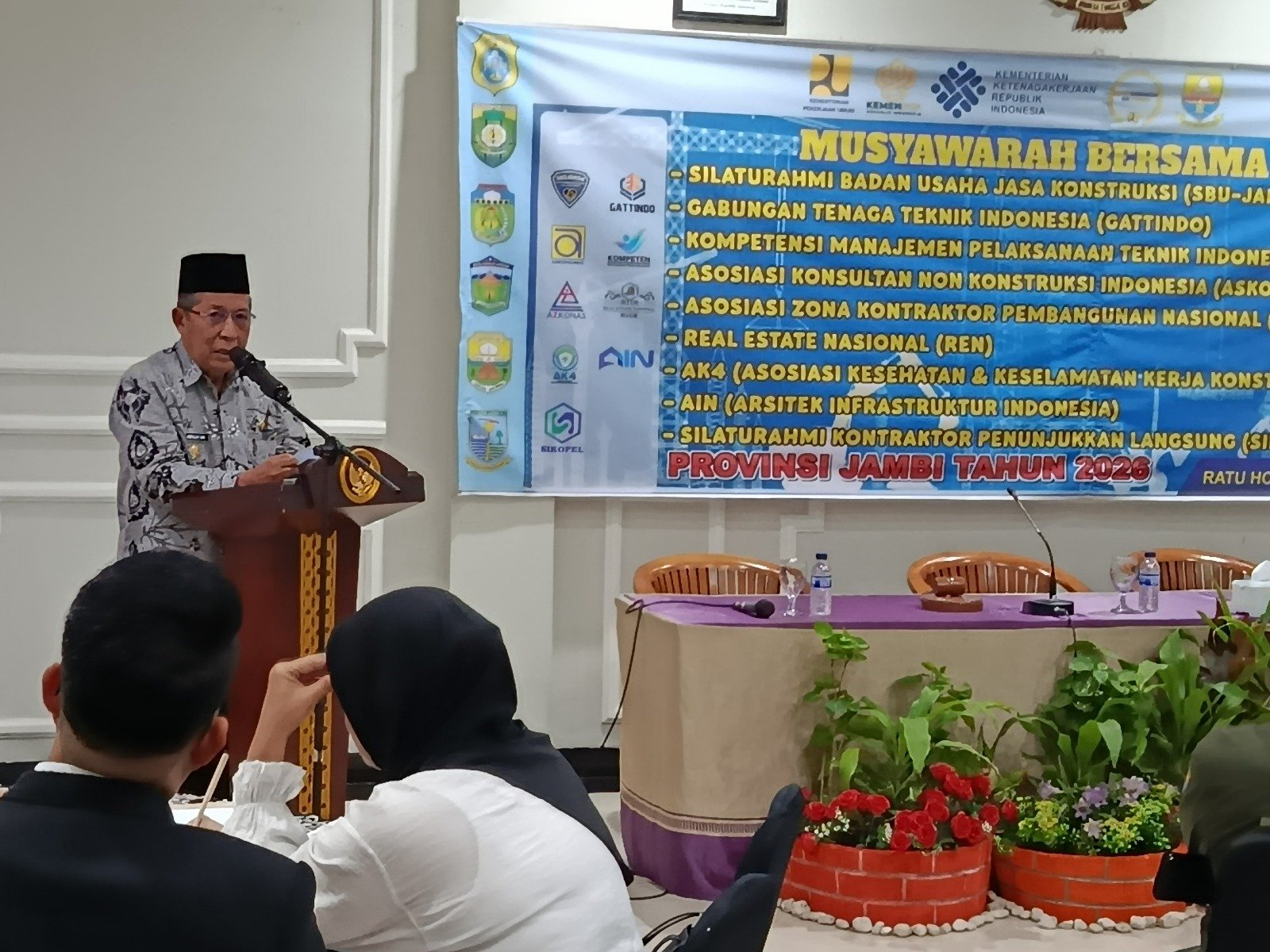 Kegiatan dihadiri langsung dan dibuka oleh Wakil Gubernur Jambi, Drs. H. Abdullah Sani, M.Pd.i, Wakil Ketua DPP SBUJAKON, Alex, S.T, M.T, Ketua DPW SBUJAKON Jambi, Berry Berly, S.E, M.M, Kabid Bina Konstruksi Dinas Pekerjaan Umum dan Tata Ruang (PUTR) Provinsi Jambi, Iwan Syafwadi, ST dan undangan lainnya.