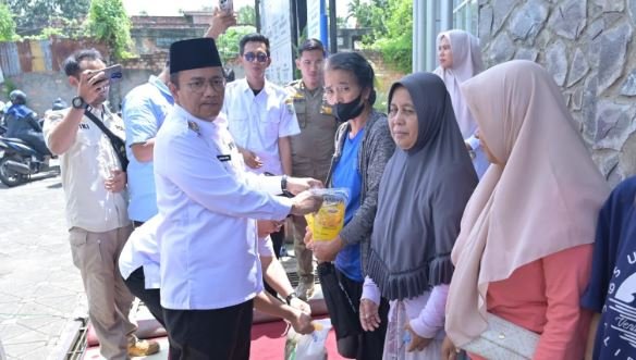 Setiap keluarga penerima mendapat 20 kilogram beras Bulog dan 4 liter minyak goreng kemasan “Minyak Kita”.