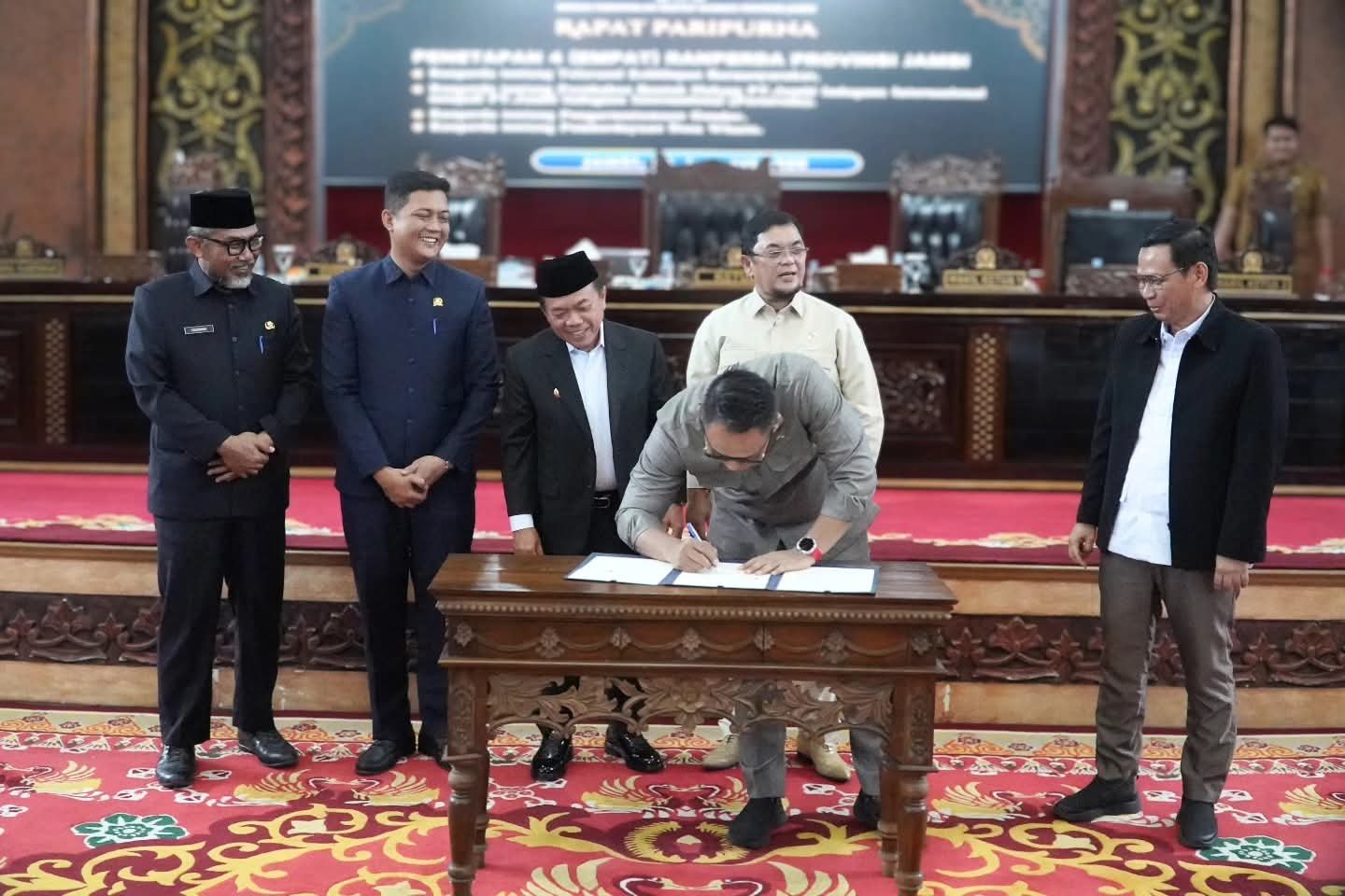 Rapat paripurna dipimpin pimpinan DPRD Provinsi Jambi dan dihadiri Gubernur Jambi Dr. H. Al Haris, S.Sos., M.H., unsur Forkopimda, serta jajaran organisasi perangkat daerah. Penetapan Ranperda tersebut merupakan hasil rangkaian pembahasan bersama antara DPRD dan Pemerintah Provinsi Jambi, termasuk penyesuaian hasil fasilitasi Kementerian Dalam Negeri.