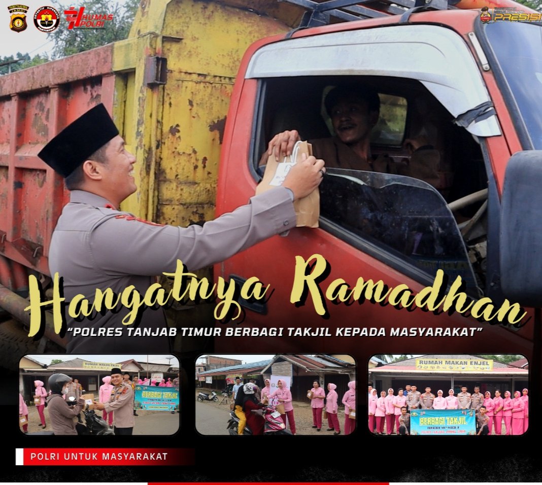 “Melalui kegiatan pembagian takjil dan buka puasa bersama ini, kami ingin berbagi kebahagiaan serta mempererat silaturahmi antara Polres Tanjab Timur dengan masyarakat. Ramadhan menjadi momentum bagi kita semua untuk meningkatkan kepedulian sosial, memperkuat nilai keimanan, serta bersama-sama menjaga situasi kamtibmas agar tetap aman dan kondusif di Kabupaten Tanjab Timur” ujar Kapolres.
